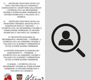 Oglas za prijam u službu na određeno vrijeme: Viši stručni suradnik – koordinator u projektu „Zaželi – za bolje sutra III“Grad Kutjevo13/11/2024Na temelju članka 1 ...