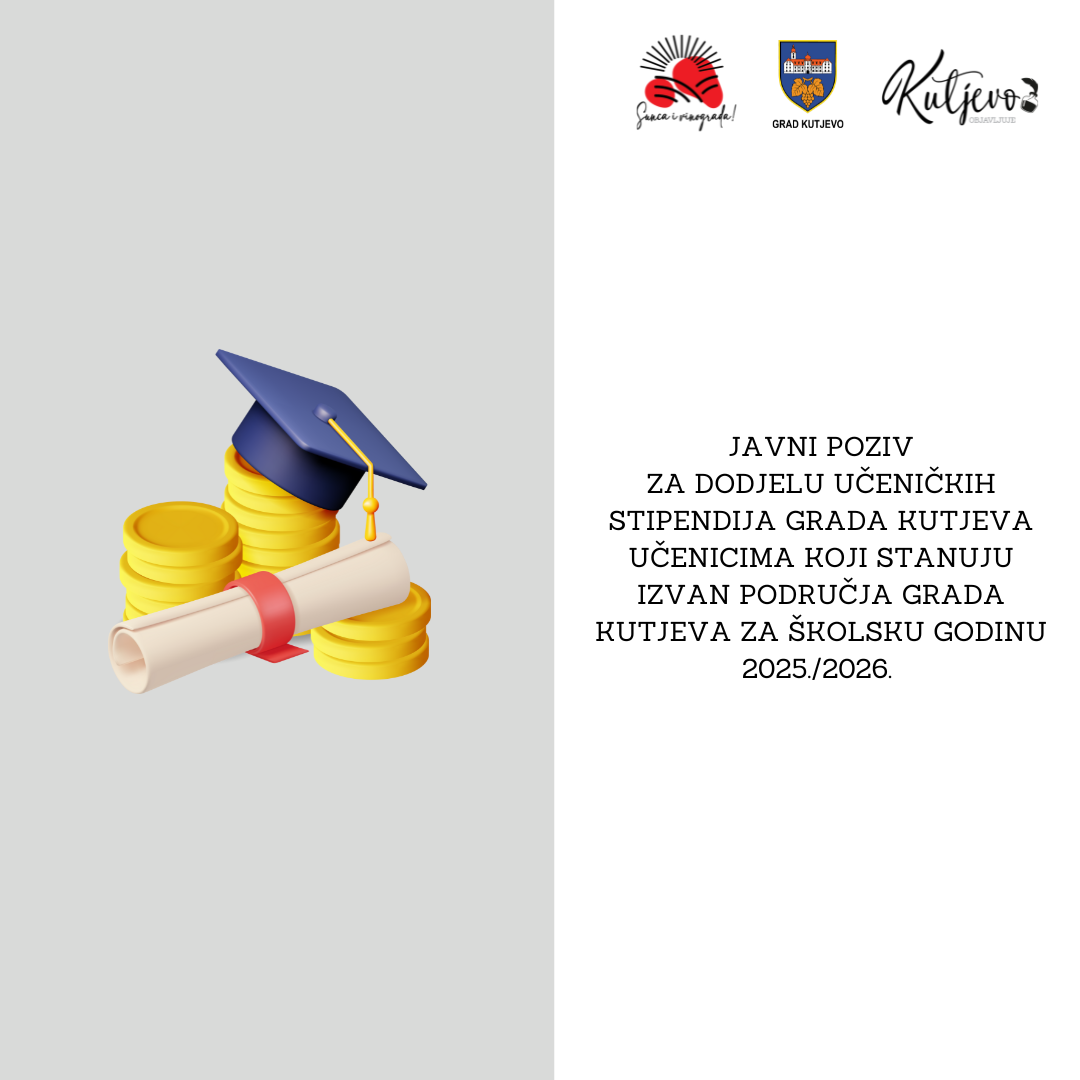 Pozivaju se zainteresirani učenici koji imaju prebivalište na području Grada Kutjeva, koji ispunjavaju uvjete utvrđene ovim pozivom i Pravilnikom da podnesu prijave za dodjelu učeničkih stipendija za školsku godinu 2025./2026.